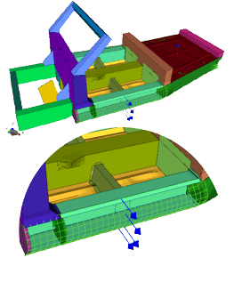 PERMAS determines a large number of results during the course of these analyses, which may be used in the assessment of the structural behaviour like deflections, stresses and strains, natural frequencies and mode shapes, strain energy distribution, sound vibration power density, time history and interaction with other parts of the structure.